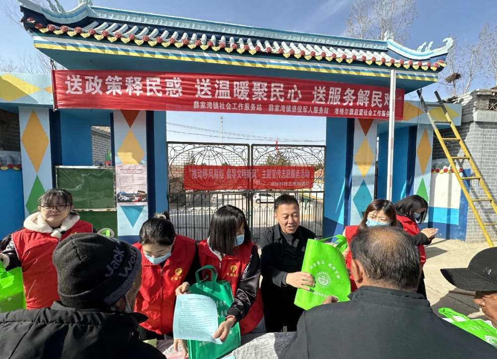 3月16日,准旗科普志愿服务队在薛家湾镇海子塔村开展“推动移风易俗 倡导文明新风”主题宣传志愿服务活动,活动累计发放相关科普宣传材料500余份,解答群众问题2条。
