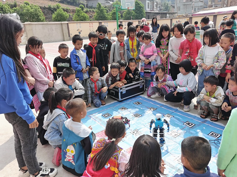 还没开始,孩子们迫不及待地体验探索着每一个科普仪器的奥秘,科普志愿者们耐心讲解“小球运动”“窥视无穷”等各种流动科技展品的原理,让孩子们零距离“触摸”科技的奇幻,为学生们提供了一个在学中玩、玩中学的机会。活动现场,学生们还一起欣赏了机器人跳舞表演,体验了VR中的虚拟世界,带上3D眼镜观看恐龙展板等,让孩子们感受到了科技的魅力。