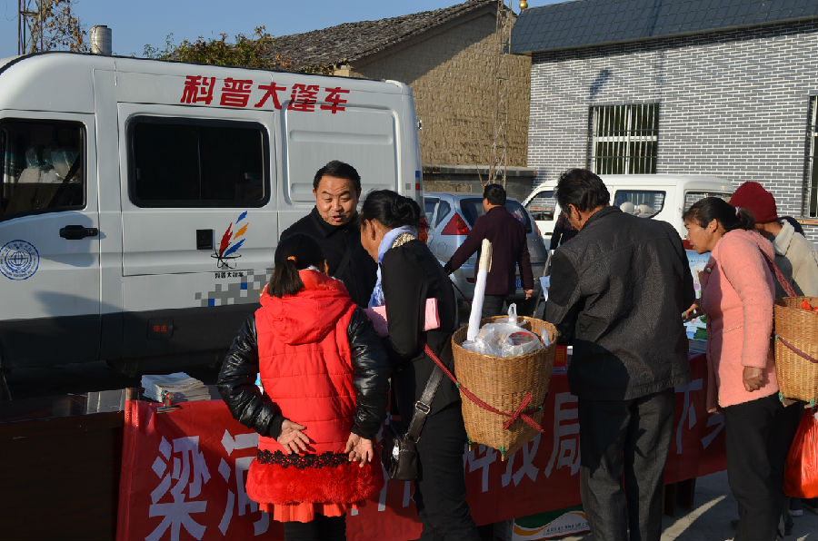 梁河县文化科技卫生“三下乡”活动于1月29日在曩宋乡举行 。在“三下乡”活动现场,县科协科技局咨询服务点共发放科普宣传资料《玉米种植技术》、《科普知识读本》、《石斛栽培技术》、《生猪养殖技术》、《趣味科普》、《小病自诊》、《低碳生活》、《防治三高》等2000多份,蔬菜种子300多包。县科协少数民族科普工作队一行6人参加加了此次科技下乡活动,认真、耐心的回答了村民提出的一些科技方面的问题;接待群众咨询近100多人次,受众人数目字3000多人。