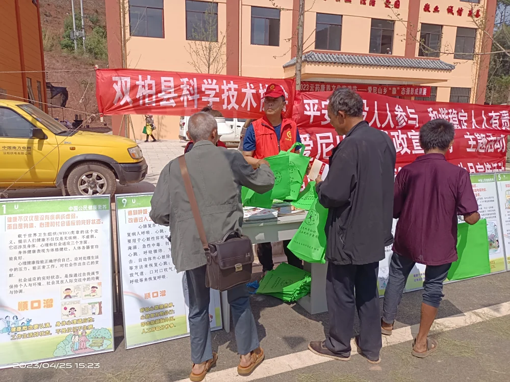 2023年4月25日,云南·爱尼山云药康养文化旅游节在双柏县爱尼山乡举办。双柏县科协借节日举办契机,组织科普工作人员到达活动现场爱尼山乡海资底社区,向参加活动的干部群众开展科普宣传服务活动。