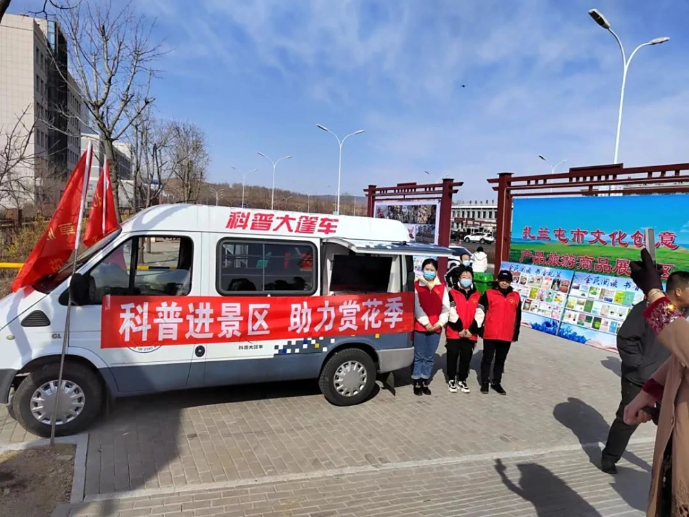 开幕式现场,科普大篷车在映山红生态公园大红门西侧,利用车载音视频设备循环播放交通安全、防火安全、个人健康、赏花好处、杜鹃花植物科普及饮食、游玩等系列攻略视频。助力游客在愉悦赏花的同时,提升科普常识。市科协的志愿者们也在公园入口处主动维护现场秩序,让游客在领略扎兰屯春季优美景色、陶冶情操的同时,提升赏花、爱花、护花的科普意识。