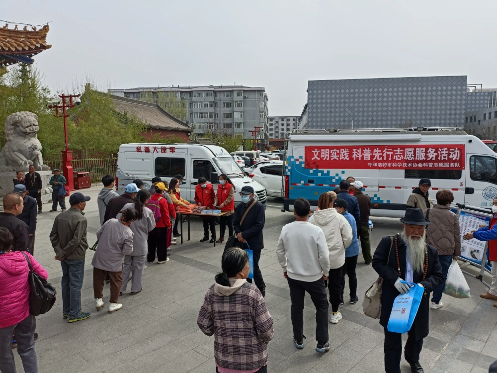 为深入推进新时代文明实践志愿服务活动,助力呼和浩特市文明城市创建。4月23日,呼市科技馆联合玉泉区科协,组织干部职工在玉泉区观音寺广场开展“文明实践,科普先行”志愿服务活动。