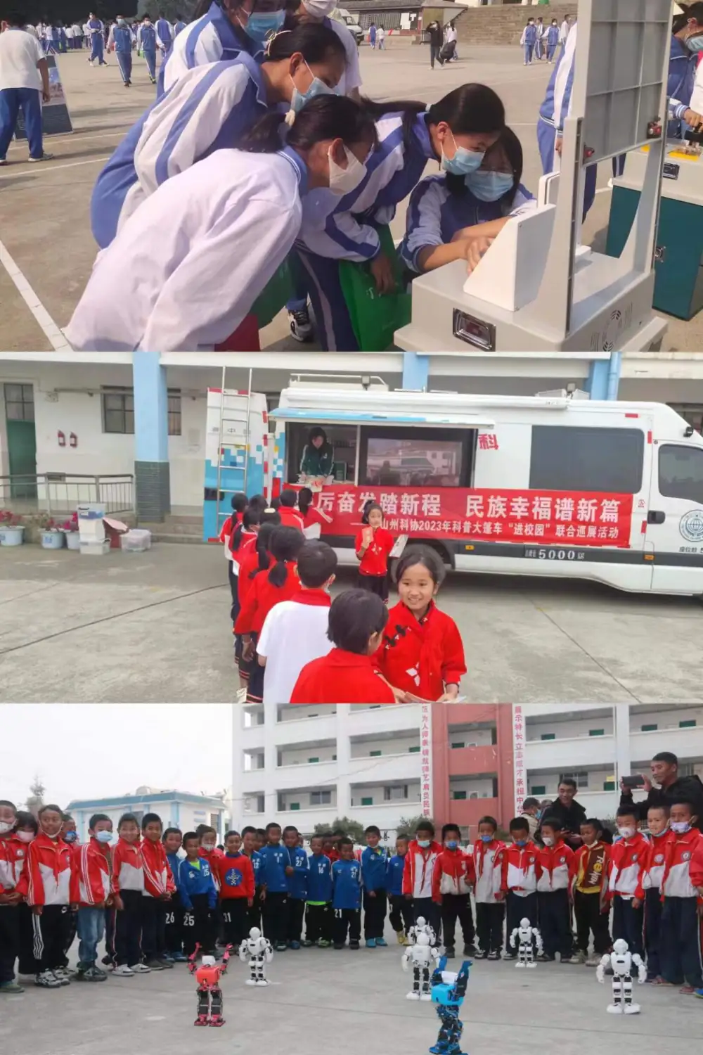 活动以科普大篷车车载展品体验为主,通过大篷车展教具展示、机器人和无人机展演、VR眼镜及3D展板体验,融知识性、科学性、趣味性、参与性为一体,巡展队员现场进行解说及指导孩子们操作,鼓励孩子们积极参与,动手操作体验科学的神奇魅力。充分调动广大青少年参与科普、走进科学的兴趣和热情,点燃孩子们的科学梦想进一步推动青少年科技普及及创新活动的深入开展。 活动现场,还向师生发放民族团结进步应知应会、普法强基读物、趣味科普、应急救护知识、《未成年人保护法》等相关科普宣传资料。进一步提高了青少年的科学素质,扩大了科普宣传覆盖面,为营造学科学、爱科学、懂科学、用科学的良好氛围奠定了坚实基础。