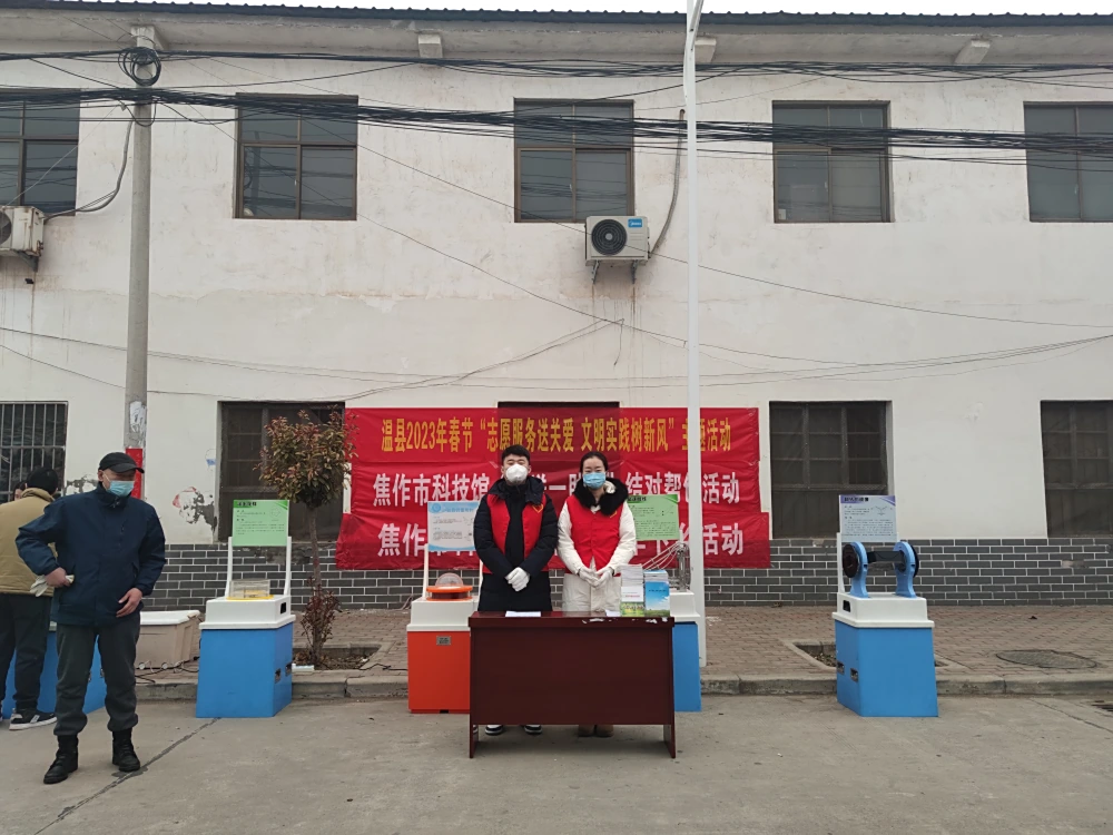 2023年1月13日,焦作市科技馆在焦作市科协指导下,与温县科协联合开展了科普大篷车走进温县黄庄镇“四送一助力”结对帮创活动。本次活动以提升全民科学素质为宗旨,传播科学思想,弘扬科学精神,增进结对帮扶乡镇当地群众对科学知识的了解,提高对科学知识的普及力度。