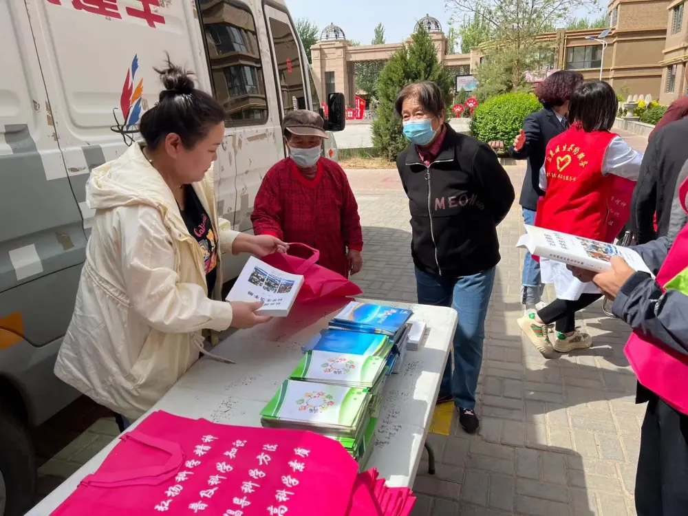 5月6日上午,临河区科协、团结办事处在团结社区党群服务中心小广场联合开展 “科普万里行”大篷车联合行动暨“义诊在身边”宣传活动。5名科技志愿者及200多名社区群众参加了活动。
