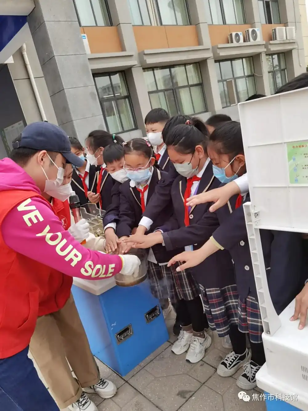 由焦作市科技馆自主研发的“神奇的液氮”科学实验秀,将整个活动现场的气氛烘托到高潮,现场科普志愿者与师生的积极互动,更加激发了同学们爱科学、学科学的探索欲和求知欲。