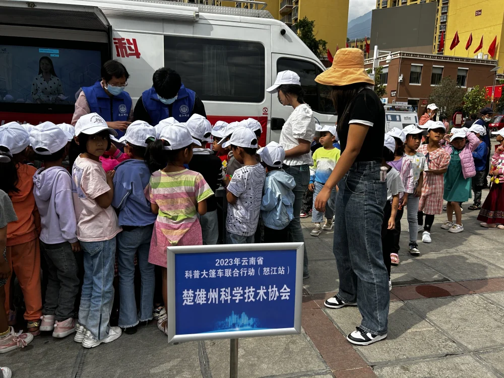 4月25日上午,2023年云南省科普大篷车联合行动(福贡站)在福贡县宣传文化中心举行,来自云南省少数民族科普工作队、昆明市科协、曲靖市科协、玉溪市科协、大理州科协、楚雄州科协、怒江州科协、泸水市科协、福贡县科协、贡山县科协等10个部门,围绕易地搬迁群众的日常生活,开展丰富多彩的科普讲座、科普展教、科普图片展、咨询服务、发放科普宣传资料等活动,让社区群众和学生零距离接触科普知识,参与互动式科技体验,感受科普带来的快乐,掀起科普活动的热潮。