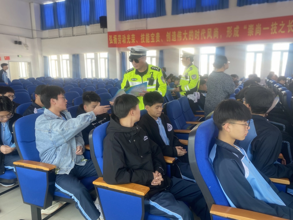 为提升广大学生的交通安全意识,深化“一盔一带”安全守护行动,有效预防和减少学生道路交通事故的发生,切实加强校园交通安全宣传教育,筑牢校园道路交通安全防线。5月8日,霍市科协联合霍市政法委、霍市交警队走进霍市职业技术学校开展科普大篷车交通安全知识进校园活动。共有约200名高一学生参加此次活动,发放科普读本200余本、“一盔一带”科普宣传单200余份。