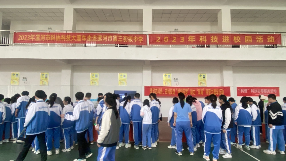 为深入学习贯彻党的二十大精神,进一步提升青少年的科学素养,培养学生学习科技的兴趣,鼓励青少年从小树立“爱科学、用科学”的思想意识,促进青少年全面发展。5月5日-6日,漯河市科协、市科技馆“科创筑梦”助力“双减”科普大篷车“i科普”科技志愿服务活动走进漯河市第三初级中学教育集团,为在校师生带去了一场以“用创新点缀人生 让科技融入理想”为主题的奇幻科普盛宴。