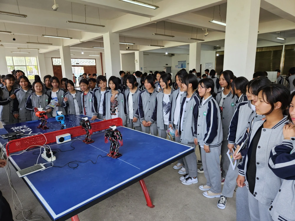 在学校科技活动室,州科协科普大篷车带去了车载展品、机器人、无人机和VR眼镜等40套。师生们分批次有序参观,大家通过小游戏学到了力学、光学、电磁学等科学原理;机器人表演引发了同学们的围观和阵阵欢呼;活动还通过车载视频、现场讲解等方式为青少年科普了防灾避险、未成年心理健康等知识,激发了他们学科学、爱科学、用科学的兴趣和热情。在阶梯教室,毕业班的500多名学生分成两批聆听了州心理学会专家老师的心理健康讲座,现场气氛活跃,笑声和掌声不断,学生不停提问与老师互动,学到了疏解心理压力的方式方法,增强了参加毕业升学考试的信心。在医务室,开展了“眼健康公益服务”活动,个旧爱尔眼科科普示范基地的医务人员为学生检查视力和眼睛健康,为有疑问的学生逐一进行眼睛健康咨询.此外,州科协党组书记、主席何剑深入到阿扎河乡田间地头,对当地的棕榈产业发展、农民工等问题进行了调研。