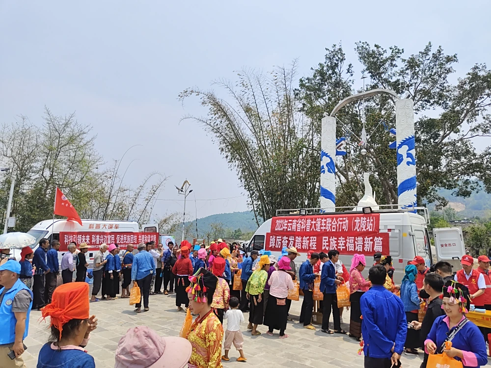 5月9日, 2023年云南省科普大篷车联合行动龙陵站把一场科普盛宴,送到了全国特少民族阿昌族聚居村落——龙陵县龙山镇芒麦村蛮旦自然村,受到当地群众热烈欢迎。