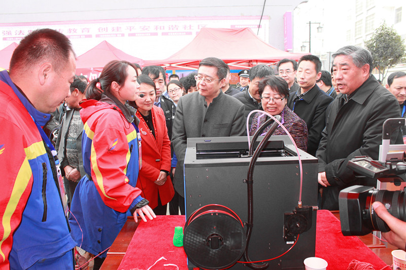 省总工会主席白阿莹,省科协副主席王前进观看3D打印机