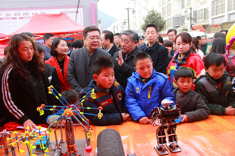 2016年2月18日,陕西省暨商洛市2016年文化、科技、卫生“三下乡”集中服务活动在丹凤县竹林关镇举行。陕西省科协统筹组织各方力量和相关项目积极参与。在科普部的协调指导下,我馆科普大篷车工作队携带内容丰富的科普展项提早赶赴活动现场,在丹凤科协的配合下,克服场地布局条件限制,合理规划布置活动区域,3D打印机、机器人表演、车载展品体验等活动内容吸引了大批公众,特别是仿人机器人的表演更是让公众留恋忘返,现场人潮如洪,成为三下乡现场活动一道靓丽风景,也引来了多家媒体的采访、报道。