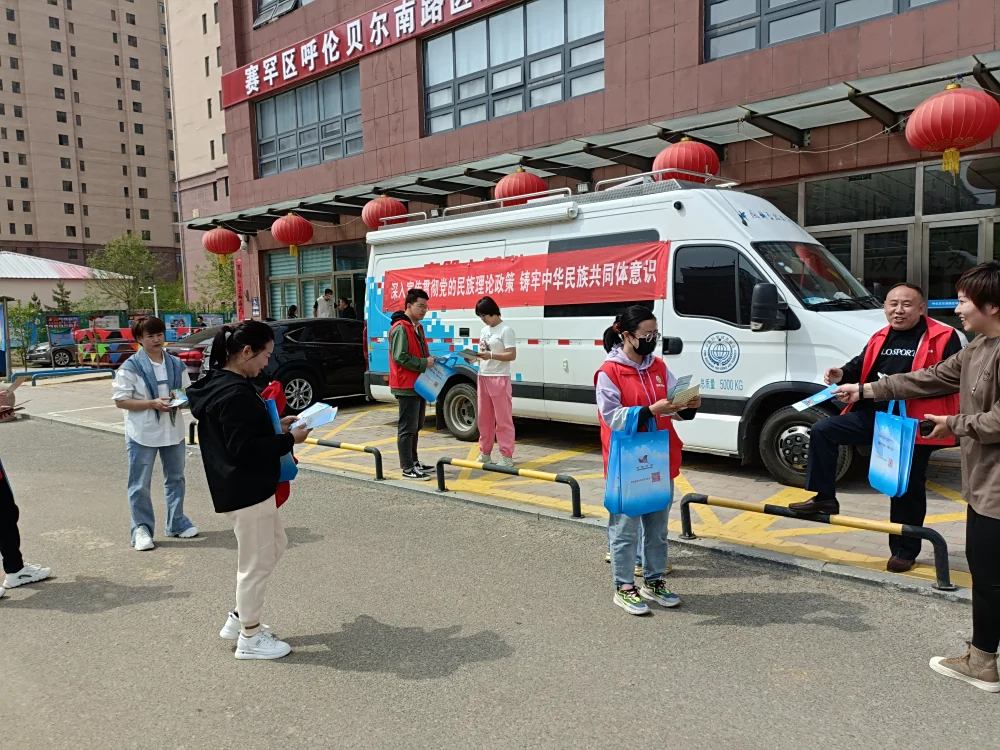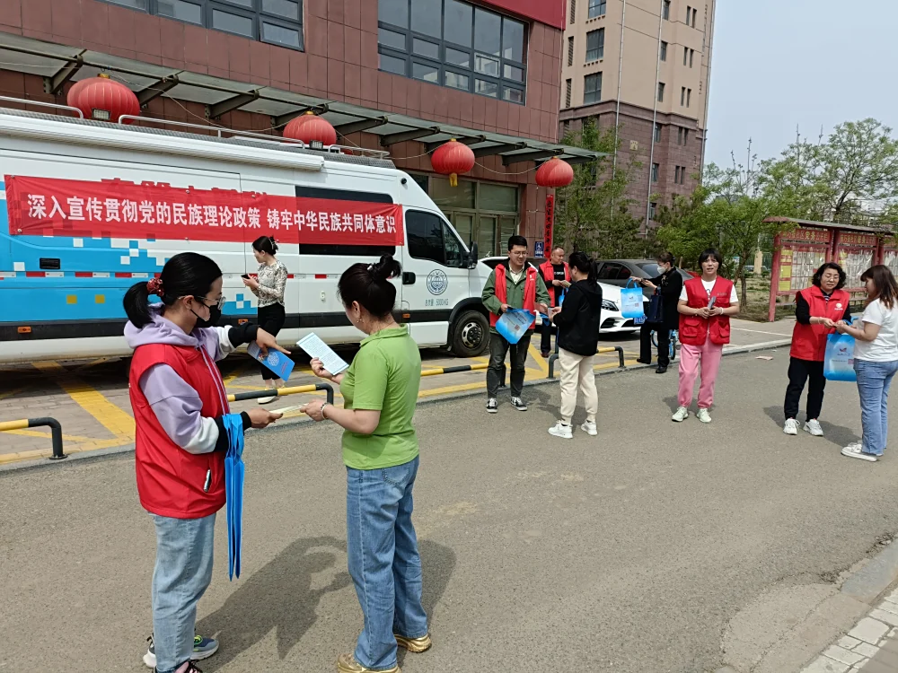 活动中,科普大篷车停靠在社区门口,志愿者们为周边居民发放科普宣传手册和环保购物袋,宣讲民族理论政策,还围绕中华民族共同体的基本内涵、铸牢中华民族共同体意识的重大意义、做“铸牢中华民族共同体意识”坚定的践行者等方面进行了宣讲学习。