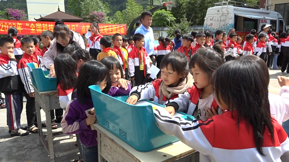 启动仪式后,科普大篷车在马鞍底小学进行了巡展活动,现场运用科普大篷车车载视频播放科普宣传片、观看科普展板、发放科普资料,利用科普仪器,科普展教具等进行现场参观体验互动,帮助广大学生树立民族团结、崇尚科学、移风易俗、健康卫生、遵纪守法的观念,同时也让学生们在实际操作体验中学习科学知识,感受科技魅力和乐趣,让学生们直观形象、生动有趣地感受到了科学的魅力。
