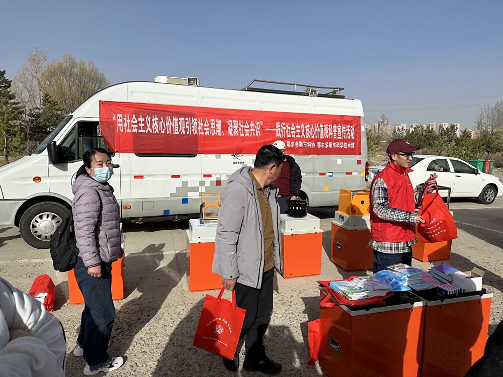 讲座结束后,鄂尔多斯市科学技术馆的科普大蓬车还举办了科普宣传活动。向社区居民展示了大篷车上的各种展品,大家动手操作,了解科学原理,感受科学的无穷魅力。活动中,鄂尔多斯市科学技术馆和东胜区科协、富民社区的科普志愿者一起,开展了百嘎丽“厚植创新 科普赋能”新时代文明实践科技志愿服务联合行动,向居民发放了各类科普宣传品和宣传手册100余份。