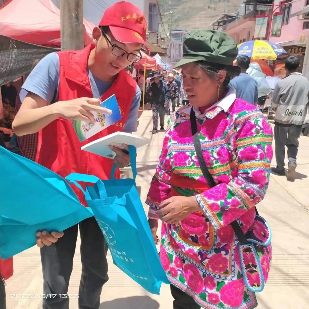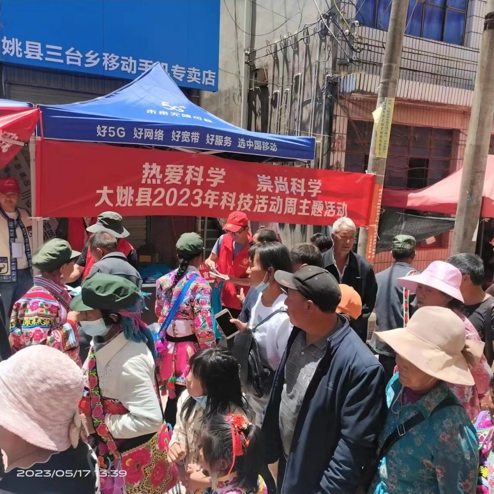 5月17日,大姚县科协借助三台乡举办“2023年彝族赛装节”民族传统节日庆典活动之机,开展以“热爱科学 崇尚科学”为主题的科技活动周宣传活动,组织科普大篷车到三台乡集镇开展防邪反邪、食品安全、应急减灾、防溺水等科普知识宣传。