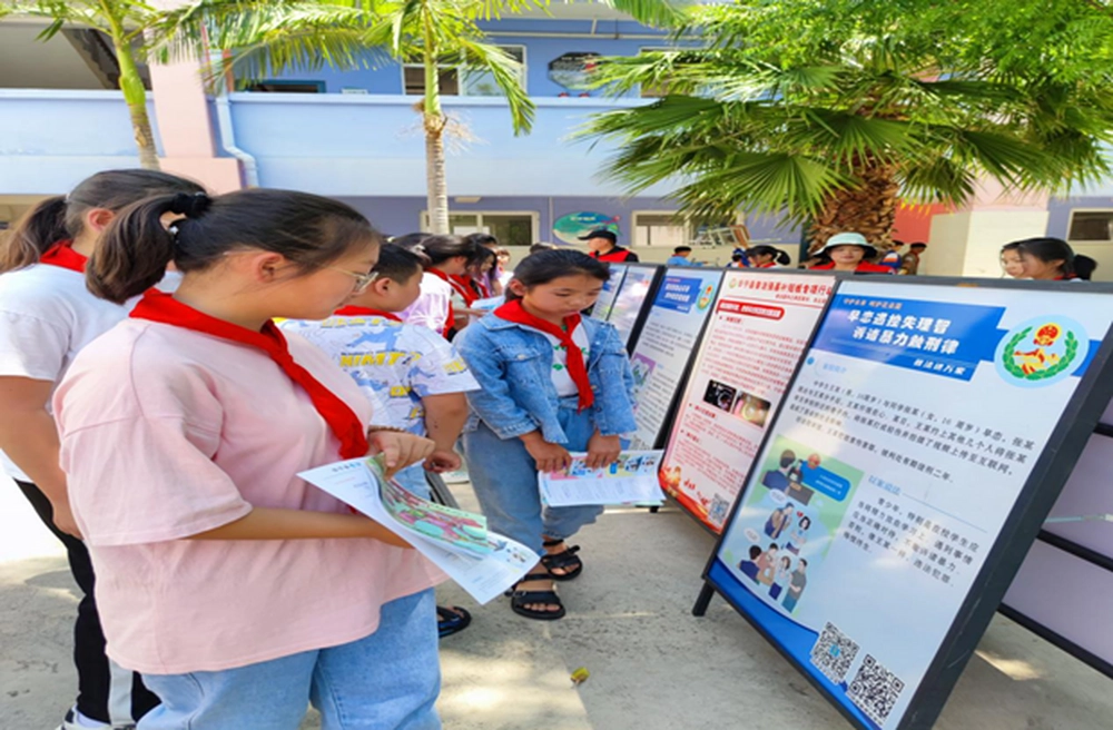 活动现场通过开讲科普实验小课堂、法律以案释法小讲堂,向广大师生科普光能、磁悬浮、风能、动力学、物理学等科学知识普及,学生们积极踊跃参与科学小知识竞赛抢答等互动游戏。同时摆放普法宣传展板36块,发放各类通俗易懂法治插画宣传折页、民法典、奥秘、美丽科普云南报、安全教育、低碳生活、疫情防控、爱国卫生、节能妙招、民族团结、健康生活、野生菌鉴别、地震防灾等趣味科普读本等相关宣传材料共计814份,向学生们宣传了《中华人民共和国宪法》《中华人民共和国未成年人保护法》《中华人民共和国家庭教育促进法》《中华人民共和国道路交通安全法》《科技进步法》《科学普及法》《义务教育法》《民法典》《预防未成年人犯罪法》《妇女儿童权益保护法》等法律法规,并结合日常生活中的案例,重点就学校安全、防溺水、交通安全、自身安全、预防未成年犯罪、防范校园欺凌等与未成年人生活学习息息相关的知识与学生互动交流,以案释法,引导同学们学法、懂法、守法和用法,机智应对危险,保护自身安全,受益师生达到407人。科普志愿者还细心叮嘱同学们在维护自身合法权益、加强自我保护的同时,还要自觉抵制种种不良行为诱惑,走好人生道路的每一步。