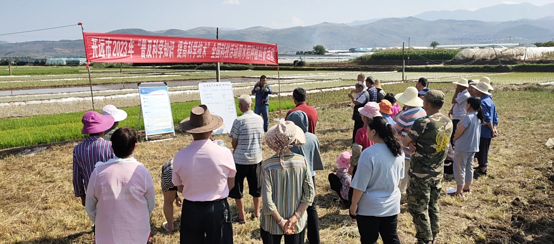 二是在羊街乡古城村委会开展开远市2023年“普及科学知识 提高科学技术”全国科技活动周水稻种植科普活动。市农业局老师为参加培训的50余名种植户讲授优质高产水稻栽培技术。向农户讲解了水稻栽培以及管理防治的各种相关知识和经验,帮助农民快速掌握选购良种、处理杂草、选择化肥和防治病虫害的方法,提升种植户的种植管理水平。
