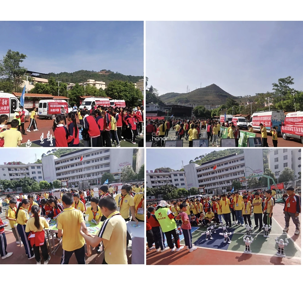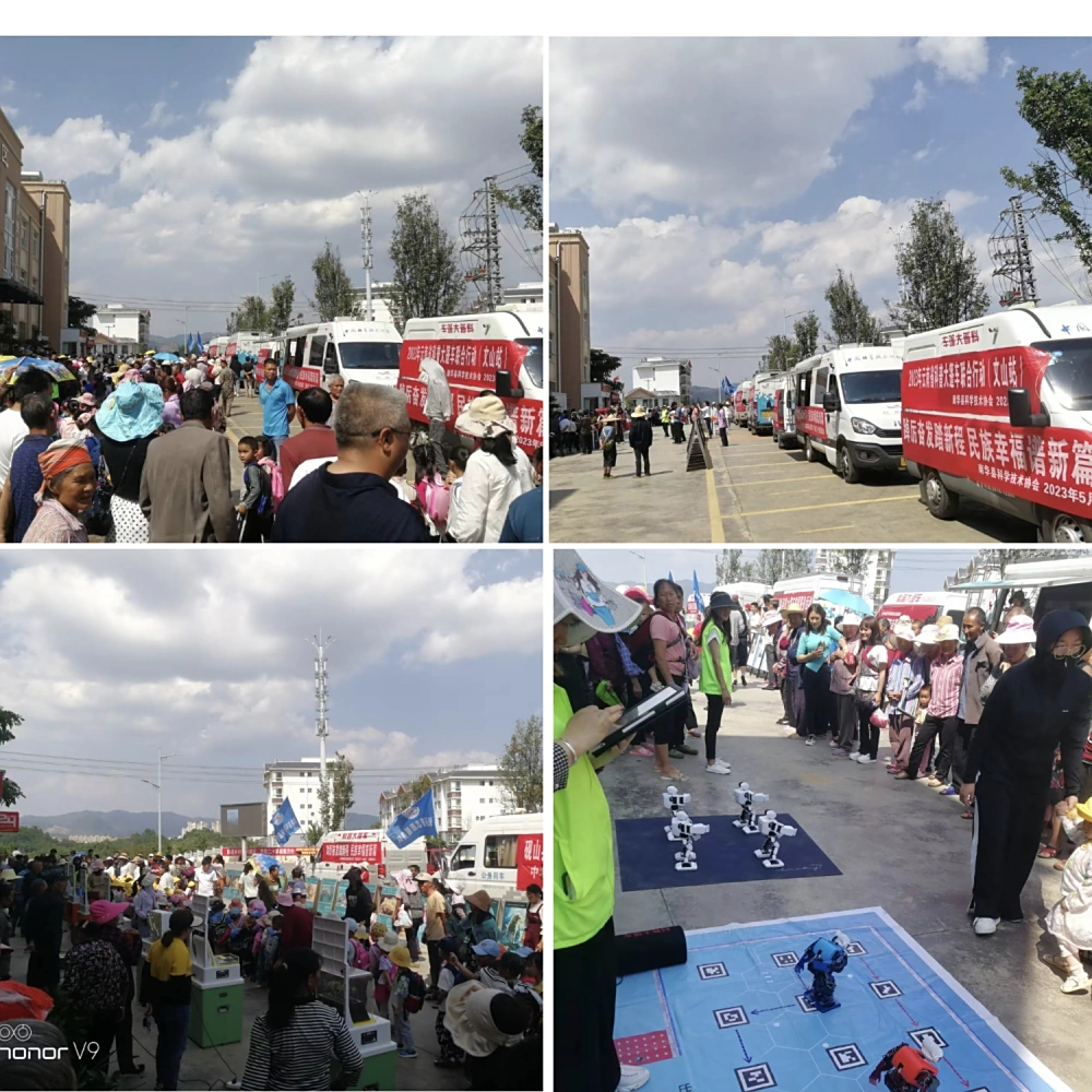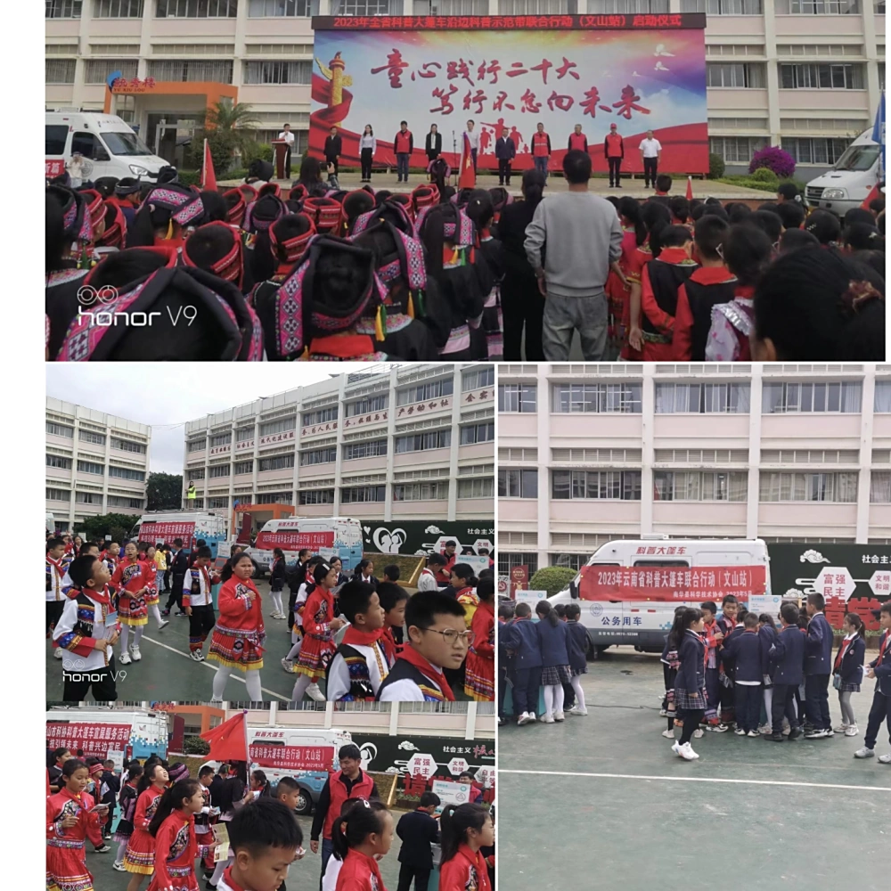为深入贯彻落实《全民科学素质行动计划纲要》精神,进一步培育青少年学生的科学兴趣与爱好,提升青少年学生的科学素养,以“着力奋发踏新程,民族幸福谱新篇”为主题的2023年全省科普大篷车联合巡展行动(文山站) 活动,进行了为期五天的科普大篷车巡展。文山州科协、保山市科协、南华县科协、新平县科协、砚山县科协和西畴县科协,共6辆科普大篷车参与了此次巡展。联合巡展队伍依次在文山市第五小学、麻栗坡县第二小学、马关县南山幸福社区和马关县第二小学进行了科普大篷车展教活动。校园里,整齐排列的科普大篷车和大篷车车载科普教具附近围满了学生,无人机和机器人趣味的表演也很是激起学生的乐趣,好奇的观看并询问着其中的原理。科普工作队员一边热情的向学生介绍讲解各个科普教具运行原理和知识,一边发放《公民科学素质400问》《趣味科普读本》《防灾减灾知识》等各类宣传资料。学生们在现场讲解和亲自动手实操中尽情满足自己的求知欲与好奇心,尽情感受科技的魅力。