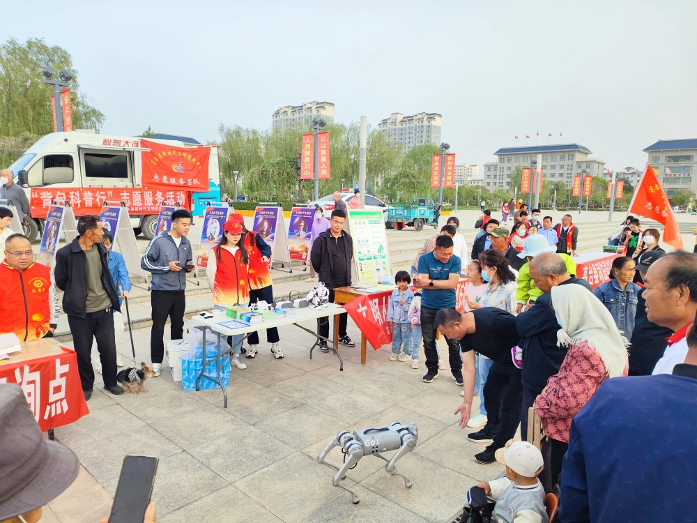 在活动现场,县科协提供了各种形式的科普资料,例如简短易懂的小知识卡片、展示科学实验的平板电脑以及科普绘本等。通过这些科普资料,参与活动的人们可以更加深入地了解科学知识,同时也可以增加对旅游景点的了解和兴趣。此外,机器人和机器狗的展演也吸引了很多人的眼球。机器人展示了它的智能舞蹈技能,同时还可以与参与者交互。另一边,机器狗则展示了它的骑行和翻跳的特技。这些机器展示了科技的魅力并激发了人们的好奇心和兴趣。为了让参与活动的人们体验更加真实的旅游,还提供了VR眼镜体验。戴上VR眼镜,人们可以仿佛身临其境地游览旅游景点,感受不同地方的自然景观和人文景观,这样不仅可以增加旅游的乐趣,还可以增加对旅游的了解和认知。