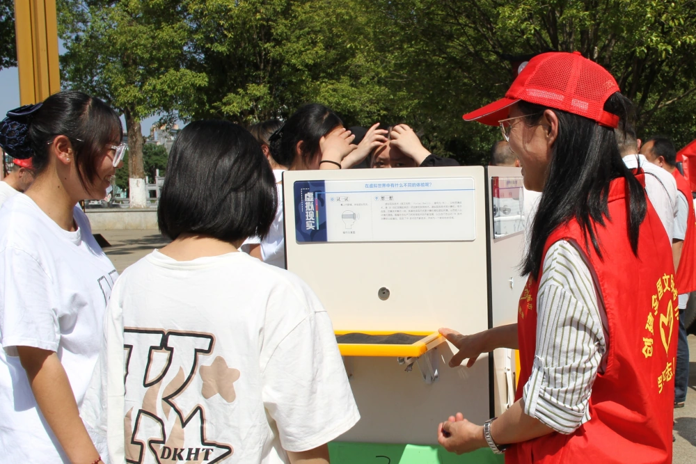 县科普大篷车满载科普资源开进启动仪式暨主场活动广场,现场设置科普宣传展区和宣传咨询台。宣传展区科普志愿者耐心指导群众亲自操作“数有其律”“健康生活”“物有其妙”“能力测试”等蕴含物理学、声学、光学、数学和卫生健康知识等24件科普大篷车展件,让其亲身感受和体验科技的魅力;宣传咨询台志愿者则向群众发放内容涉及打击邪教、文明健康、低碳生活、科学防疫、网络安全等方面宣传折页,科普小读本,美丽云南微科普等科普宣传资料1000份,接受群众科普咨询并耐心为其解疑答惑157次。