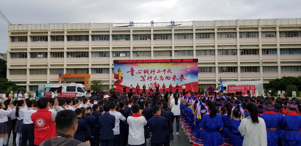 5月15—19日,西畴县科协出动科普大篷车及3名工作人员参加以“踔厉奋发踏新程 民族幸福普新篇”为主题的云南省科普大篷车联合行动——科普边关行(文山站)活动,到文山市第五小学、麻栗坡县第二小学、马关县南山幸福社区、马关县第二小学开展科普大篷车进校园进社区科普活动。