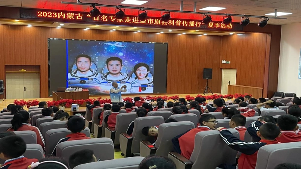 2023年“百名专家走进盟市旗县科普传播行”夏季活动——科技助力“双减”专题培训活动,走进乌拉特前旗第四小学,特邀请到北京航天大师、神州十号太空授课教案专家组副组长金声老师助力小学生航天梦。