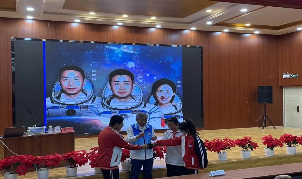 金声为全体师生带来一场题为“飞向太空”的航天主题科普讲座。金声回溯了中国第一颗人造卫星“东方红一号”送入太空的历程,讲述了火箭腾空而起的原理,带领学生们感知了我国航天事业的蓬勃发展,畅想了中国航天梦,精彩的讲座激发了现场青少年的求知欲望,台上台下互动频频,气氛热烈。