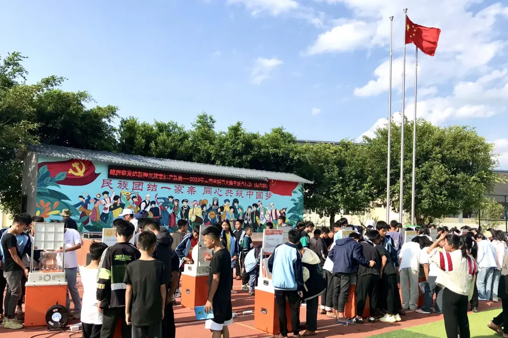 为弘扬民族团结精神,促进边境地区少数民族群众科学素质提升,5月14日至19日,马关县科协受邀参加在红河州河口县、金平县、绿春县开展“踔厉奋发踏新程,民族幸福谱新篇”为主题的2023年云南省科普大篷车联合行动(红河州站)科普宣传活动。活动中,为当地3600余名师生展示了伯努利星环、VR虚拟现实、机械伸缩花、双足机器人、四足机器人、大疆无人机、大疆坦克战车等100余件科普展品展具。通过亲自动手动脑参与活动,进一步激发了边境青少年学生的科技兴趣,营造了浓厚的“讲科学、学科学、用科学”的良好氛围。