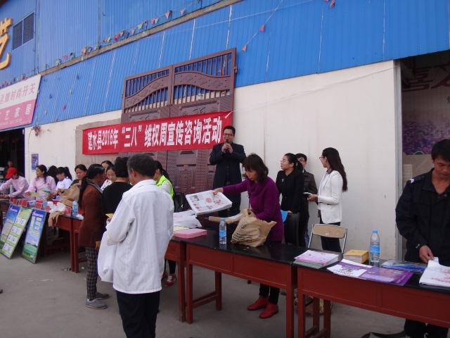 2016年3月10日,建水县科协与县妇联、县总工会、县团委、县卫生局、县司法局、县公安局、西庄镇政府在西庄镇马坊街开展“三八”节宣传活动,请律师专门给群众讲解婚烟法、妇女儿童保护法,县计生和疾控中心的医生给群众梁血压,各单位发各种相关宣传资料,县科协发环保袋500个,年历画50张,趣味科普读本30本。