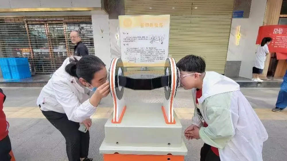 5月19日上午,第三十三次“全国助残日”来临之际,兰州市科协联合张掖路街道大众巷社区开展了主题为“睦邻微科展 幸福义+医”义诊服务活动。活动现场,来自兰州惠尔安康齿科有限公司科普基地和兰州普瑞眼视光医院科普基地的医生为城关区辅读学校的全体师生、家长以及社区居民进行了专业的口腔、眼部健康检查,并耐心细致地解答了大家提出的问题。同时,兰州市科协带来的双曲狭缝、锥体上滚、旋转的镜像、最速降线等多件科普大篷车展品一一亮相,为孩子们开启了一场神奇的科技之旅。孩子们纷纷围着科普展品,用稚嫩的小手好奇地触摸、用探究的眼睛认真地观察,“亲密接触”科普展品,零距离体验科技乐趣,感受科技魅力。此次活动,受众100余人,展出科普展品8件,发放健康知识宣传册100余份,是名副其实的“家门口的便利”,受到了学校师生、家长以及社区居民的一致好评。活动中,为了更好的把科学文化送到百边,科技志愿者还现场指导居民们下载安装了“科普中国”APP。