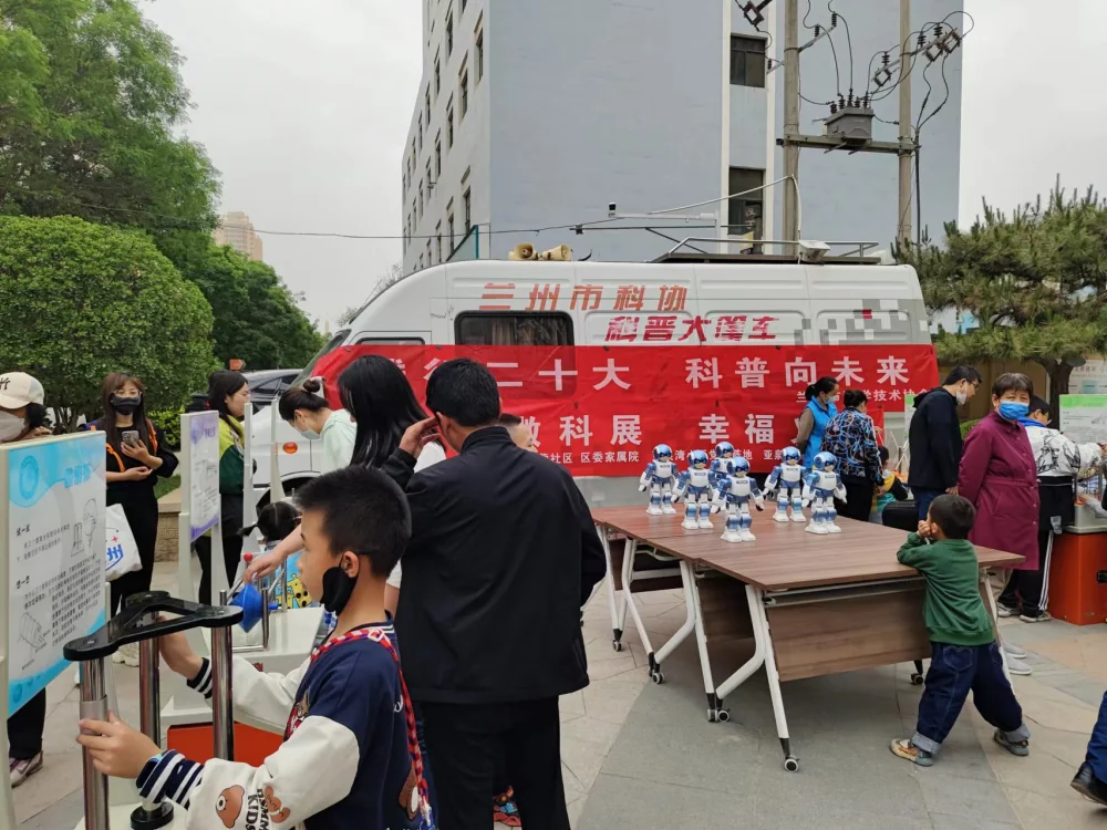 5月20日上午,在2023年全国科技周来临之际,兰州市科协联合安宁区西路街道费家营社区开展了主题为“睦邻微科展 幸福义+医”义诊服务活动。活动现场,来自甘肃省中心医院、兰州惠尔安康齿科有限公司、兰州普瑞眼视光医院、兰州手足外科医院等科普基地的医生为居民们进行了专业的口腔、眼科、骨科、儿科健康检查,并耐心细致地解答了大家提出的问题。同时,兰州市科协带来的双曲狭缝、锥体上滚、旋转的镜像、最速降线等多件科普大篷车展品一一亮相,泰坦机器人伴随欢快音乐跳起了舞蹈,兰州地震局引人入胜的地震科普知识等,为孩子们开启了一场神奇的科技之旅。孩子们纷纷围着科普展品和泰坦机器人,用稚嫩的小手好奇地触摸、用探究的眼睛认真地观察,“亲密接触”科普展品,零距离体验科技乐趣,感受科技魅力。