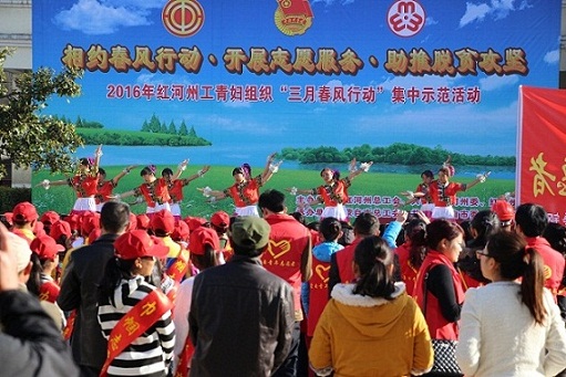 2016年3月1日,蒙自市科协积极响应号召,组织5名科普志愿者积极参加州总工会、团州委、州妇联在蒙自市水田乡举办的“三月春风行动”集中示范活动。