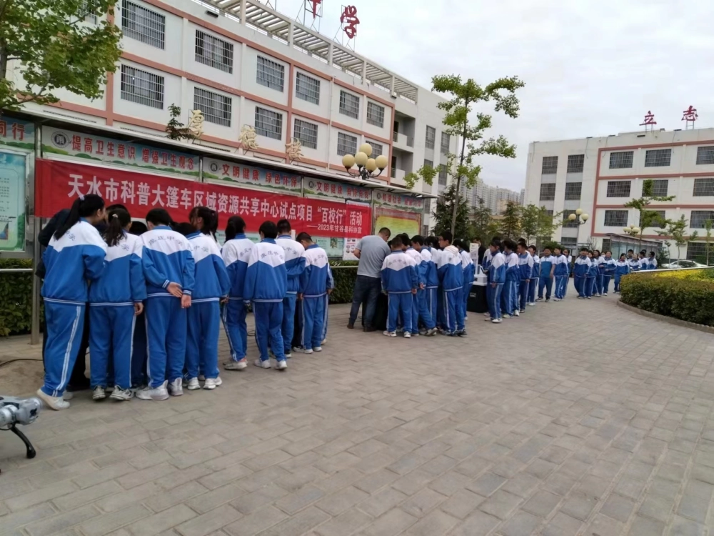 为了深入贯彻全国为助力“双减 ”丰富校园文化生活、激发学生“爱科学、学科学、用科学 ”的热情。2023 年 5 月30日下午,天水市科普大篷车进校园活动走进康庄路初级中学,给学生们带来了一场科技性、趣味性的科普巡展活动。