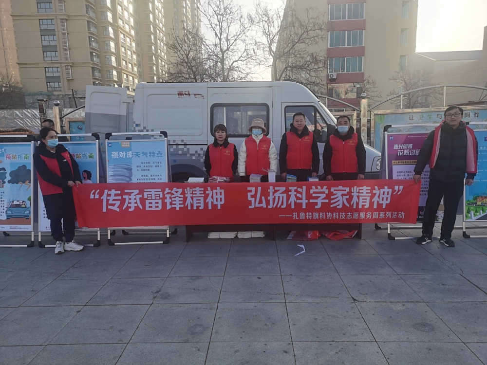 为深入学习贯彻党的二十大精神,传承雷锋精神,大力弘扬“奉献、友爱、互助、进步”的志愿服务精神,深化和增强全旗新时代文明实践志愿者奉献服务意识,扎鲁特旗科协结合实际,联合旗委宣传部、旗委组织部、旗文明办,于2023年3月2日精心组织开展大型联合主题活动——“传承雷锋精神 弘扬科学家精神”科技志愿服务周系列活动。