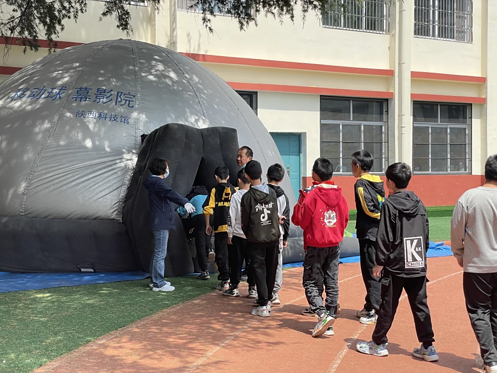 陕西科技馆科普大篷车带去了车载展品、球幕影院,以及科学实验、仿人机器人和无人机表演等展项。丰富的车载展品吸引了孩子们的眼球,“画五角星”“手蓄电池”“短期记忆测试”等车载展品涉及声、光、电等各个方面。同学们兴致勃勃、争先恐后地动手操作展品,在“试一试”和“想一想”中尽享了一场“科技大餐”。 科学实验《旋转之美》《眼见不为实》《想象无处不在》《一纸托人》《空气炮》《马德堡半球实验》让学生们纷纷踊跃参与互动。仿人机器人“小宁”“小萌”伴随着《我们都是追梦人》《青春修炼手册》等美妙音乐展示了动感舞蹈,在孩子们的惊呼声中,完成了一个又一个的高难度动作。球幕影院独特的视觉冲击、立体环绕声效带来强烈的沉浸感,让大家感受到犹如身临其境的体验。一时间,校园里人声鼎沸,热闹非凡。