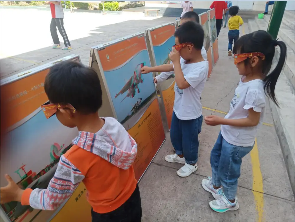 宣讲结束后,带领同学们观看了防溺水知识宣传和三维立体科普展板,在3D展板面前,同学们带上3D眼镜,一块块展板立即“活”了起来,伸手去去触摸飞机、坦克,各种先进武器装备,充分满足同学们的好奇心。