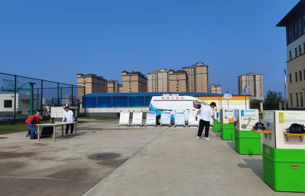 操场上,科普大篷车带去的机械传动、视觉体验、运动与力、VR眼镜等多组科普展品,激发了学生对科学的兴趣。孩子们兴致勃勃、争先恐后,细读铭牌、认真操作,亲身体验着力、热、光、电的无穷魅力,在“试一试”“想一想”“学一学”中体会着科技带来的乐趣。场地另一边,操作台上的跳舞机器人周围聚满了学生,在科技志愿者的操纵下,机器人跟着音乐翩翩起舞,时而柔缓,时而劲爆,引得现场孩子们一阵阵欢呼。此次活动,也带去了多块宣传展板,内容涵盖防灾减灾、健康生活和垃圾分类等内容。