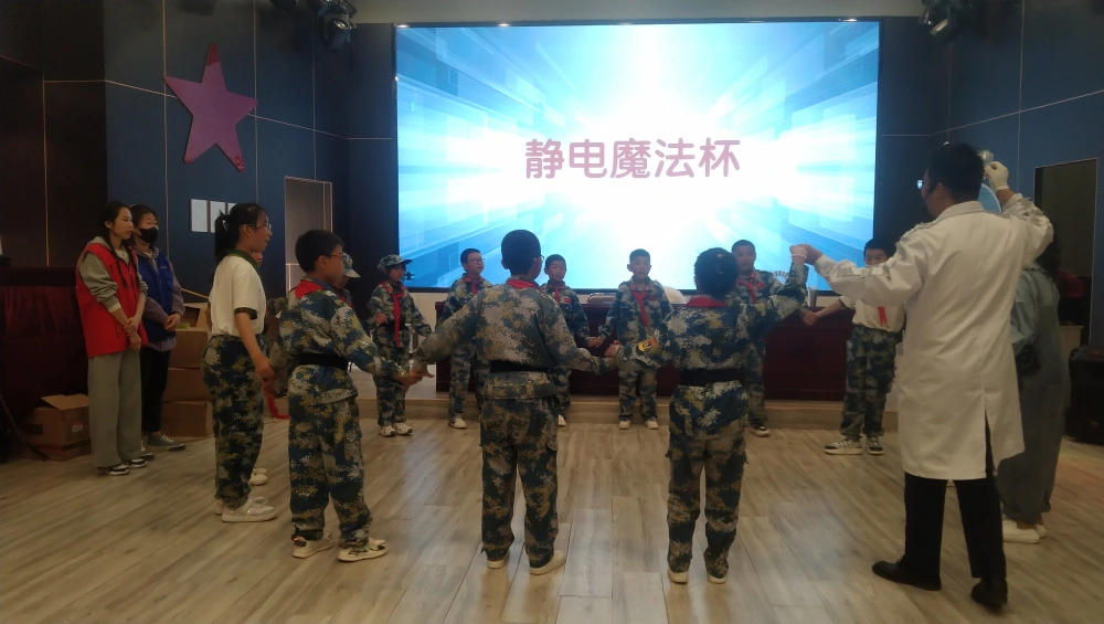 科普大篷车驶入校园,带来了流动科普展品,紧接着由内蒙古科技馆科普工作人员带来精彩的科学实验秀“静电魔法杯”“静电章鱼”“超大空气炮”“机器人表演”,在讲解员精彩的表演中传递了神奇有趣的科学知识,同学们纷纷上台互动体验。