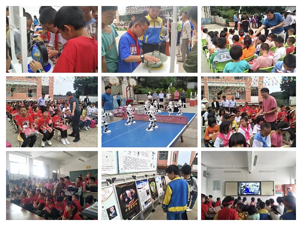 活动现场,科普志愿者通过悬挂条幅、设立钱学森、华罗庚、邓稼先、袁隆平、南仁东等科学家精神事迹展牌12块、播放“向科技工作者致敬!带你走进六位科学家的‘感人瞬间’”;“两弹一星”背后默默无闻的科学巨匠;20世纪最伟大的科学家——屠呦呦;记得英雄、留住感动,隐姓埋名30载的核潜艇之父——黄黄旭华等科学家感人事迹短视频。通过课堂视频学习理解伟大科学家精神事迹后,同学们来到室外饶有兴致地围拢在声、光、电、力、磁学、3D展板等科普展教设备周围,每一件科普展教展品都让学生大开眼界,甚为好奇。在科普志愿者的指导讲解下,学生们零距离直接动手操作体验科技展品,在“试一试”“想一想”中感悟其中科学原理、学习到了科学知识,感受到了科学的奥妙与科技的神奇,感受到了科学带来的快乐;在轻快的音乐声中,机器人有模有样地下蹲、站立、摇摆、双臂伸展、回礼,动作整齐划一的表演让孩子们更加近距离感受科技魅力。在阵阵掌声与笑声中,“人工智能”这一词语也扎根在学生们心中,激发了学生对科技的兴趣,播种了一粒粒科学的种子。活动还发放文明健康、低碳戒烟、节约用水、食品卫生、民族团结、反邪教等各类科普宣传材料420余份。