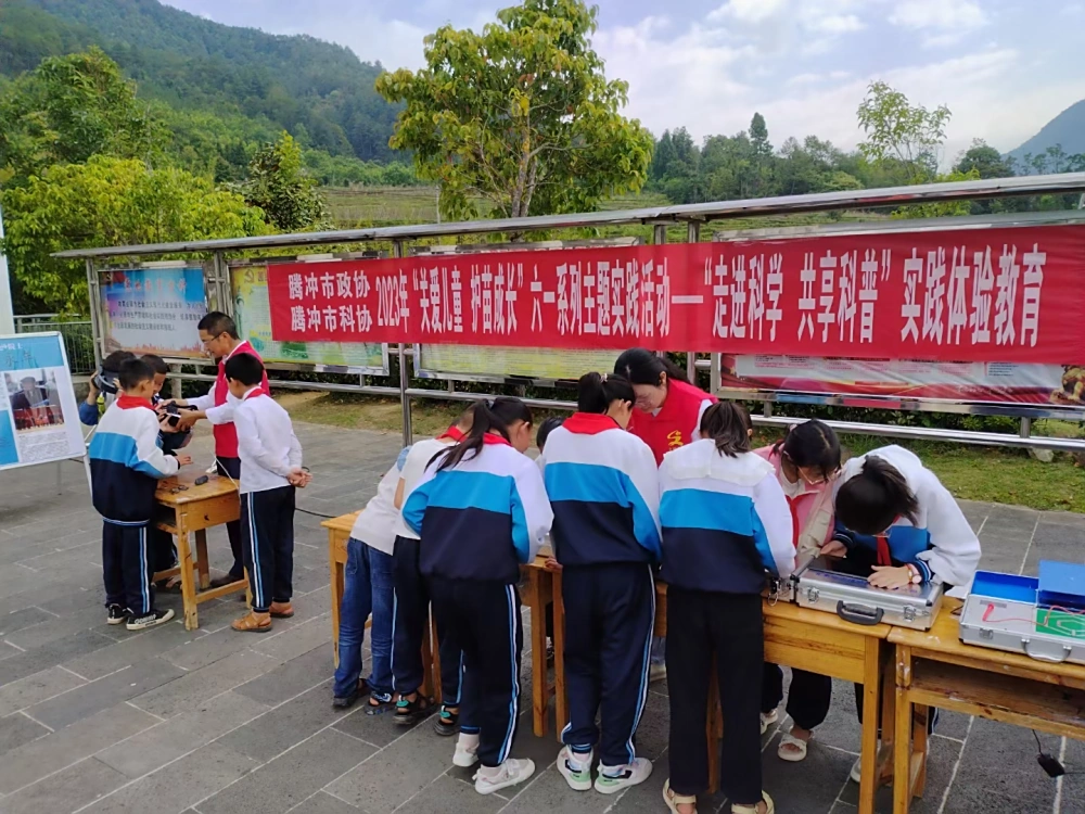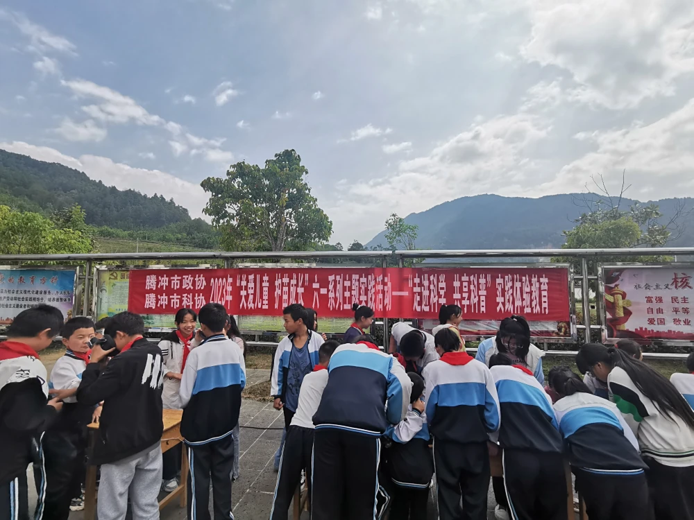 2023年6月2日,腾冲市政协、科协联合开展以“走近科学 共享科普”为主题的“关爱儿童,护苗成长”六一系列主题实践活动。到固东镇小甸完小进行科普大篷车进校园活动,为108名师生送去了科普大餐。