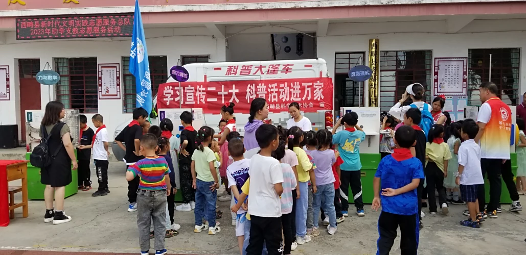2023年6月1日,西畴县科协、县气象局、县老科协联合到西畴县老寨民族小学开展“科普知识进校园暨欢庆六一”科普宣传活动。 活动主题为落实立德树人根本认务,培养拥有“四个自信”好孩子,开展科普大篷车进校园传播科学思想,普及科学知识,启迪培养学生科学兴趣。