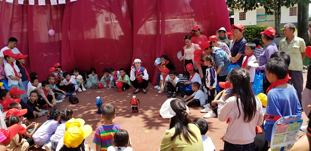 此次活动设五项活动内容展开,一是学校师生开展庆“六一”文娱表演游园活动,二是学校师生及周边群众观摩体验3D海洋生物科普展板,亲自动手参与大篷车科普展教具体验实践活动;三是观看机器人、机器狗表演;四是发放科普宣传资料;五是气象防灾减灾科普知识讲座。