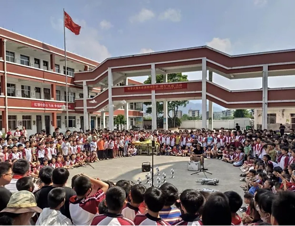 全校学生围坐在一起,目不转睛地盯着机器人的表演,特别是“四足仿生机械狗”干脆灵活地完成卧倒、跳跃、后空翻等一系列的动作后,引来学生的阵阵惊呼与赞叹。学生小陈说:“科普大篷车进校园,让我们农村的孩子开阔了视野,体验到了科技的神奇,希望科普大篷车以后能常来我们学校。”