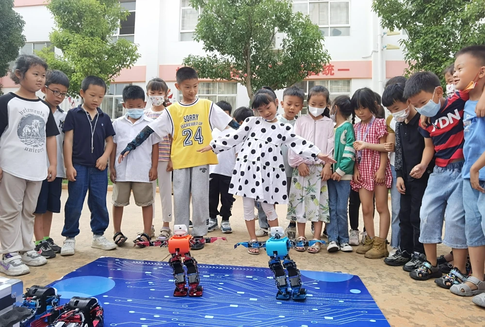 当日上午,红河州科学技术协会、建水县科学技术协会“科普大篷车”联展活动亮相四小,向同学们展示了“数有其律”“物有奇妙”“能力测试”“健康生活”“高新科技”机器人、遥控坦克、无人机等多件展品。琳琅满目的科技展品深深地吸引了孩子们的注意力和好奇心,通过形象、活泼、有趣的互动,展示出物理、数学、力学、光学、电磁学等多个学科的科学现象及科学原理,孩子们在看、玩、摸等实操中体验到有趣的科技知识,近距离触摸科学,身临其境感受科普乐趣。