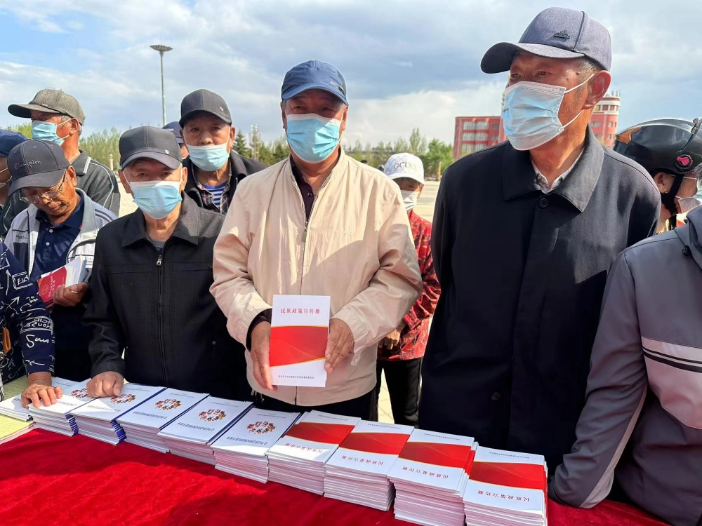 “铸牢中华民族共同体意识,全方位建设“模范自治区””主题活动,向居民群众发放《总书记讲过的民族团结进步故事》《民族政策宣传册》《民法典》等民族政策、法律法规宣传单,引导更多群众积极参与到民族理论政策的学习中来,不断铸牢中华民族共同体意识,使民族团结观念深植于心,积极营造共同团结奋斗,共同繁荣发展的良好社会氛围。