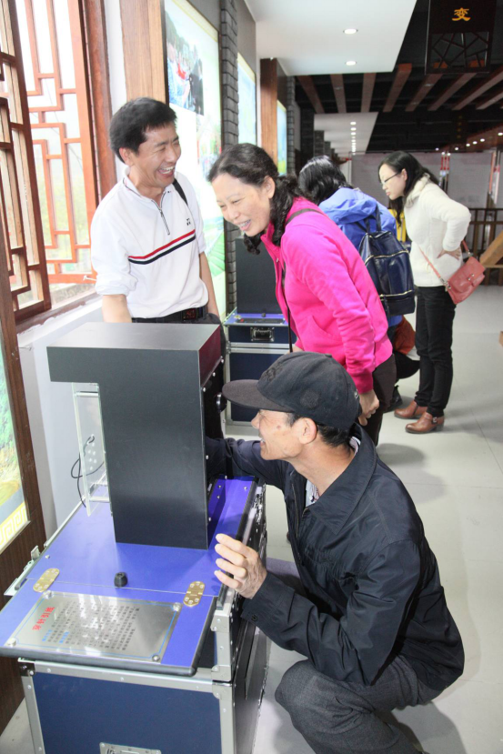 广州市科学技术普及中心摆放了科普大篷车的体验装置,并由工作人员向村民们演示各种电磁现象、机械传动和视觉体验等科普展品。展览过程中,村民热情高昂,围着工作人员不断发问,了解科普原理,很多头发已经花白的村民饶有兴趣地操作这些科普实验装置后,表示增长了见识,开阔了眼界。