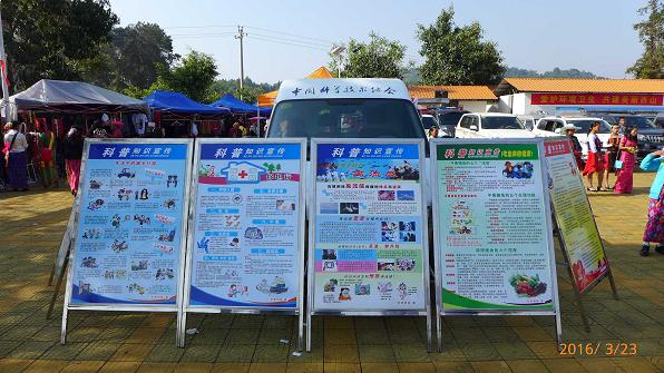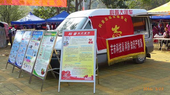 2015年3月23日芒市科协科普服务队到西山乡参加“西山乡第十六届目脑纵歌节暨科普大篷车进乡镇活动。芒市科协科普服务队充分利用乡镇赶集日、节庆日进入进村入寨进行科普宣传活动。