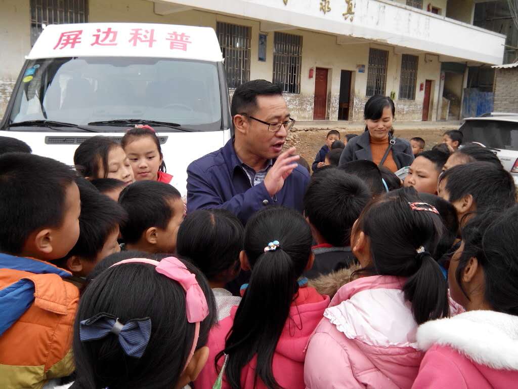 2016年3月29日,屏边科普大蓬车开进了校园,县委常委、县人民政府常务副县长刘红明率领县科协干部到和平镇中心校开展科普知识宣传。